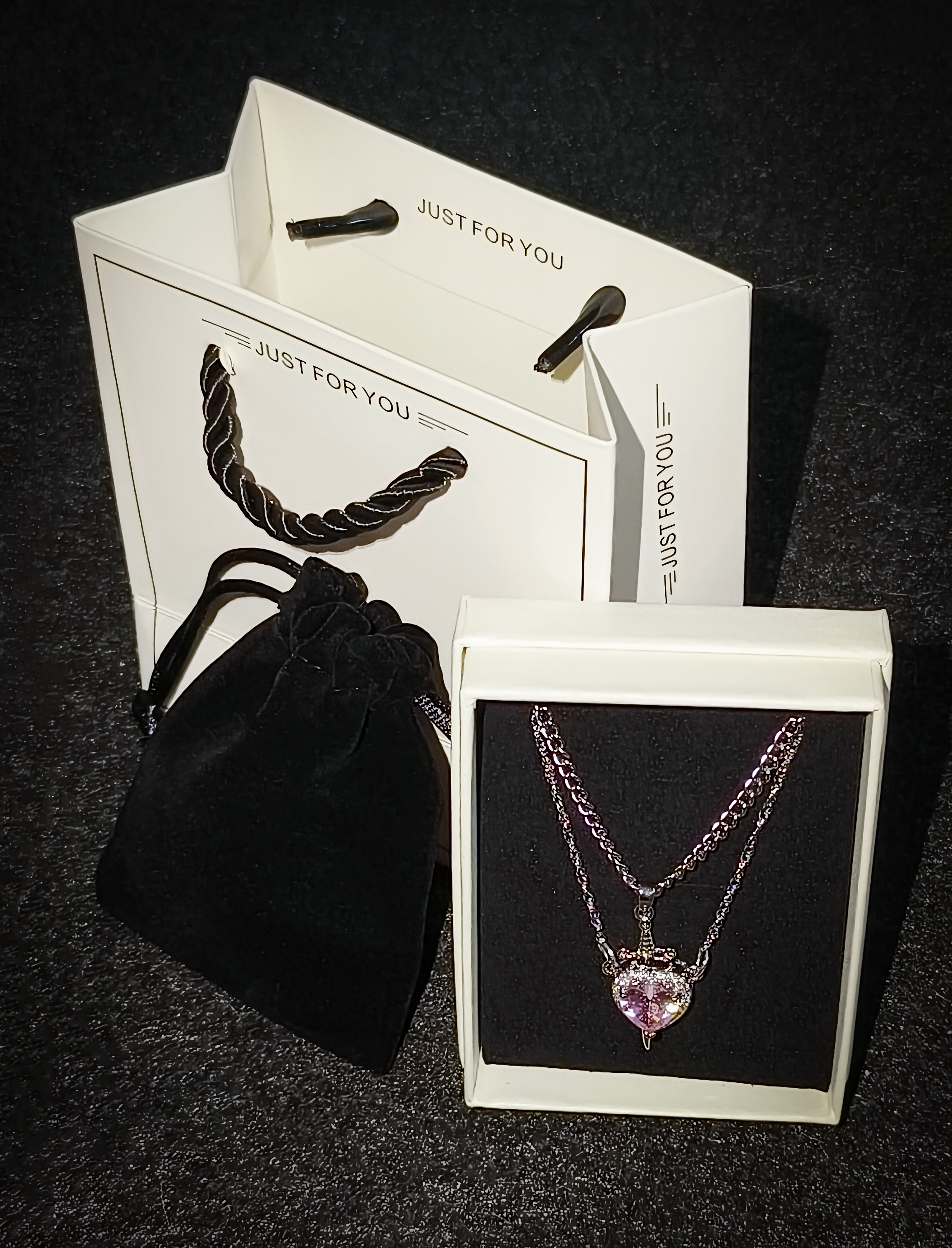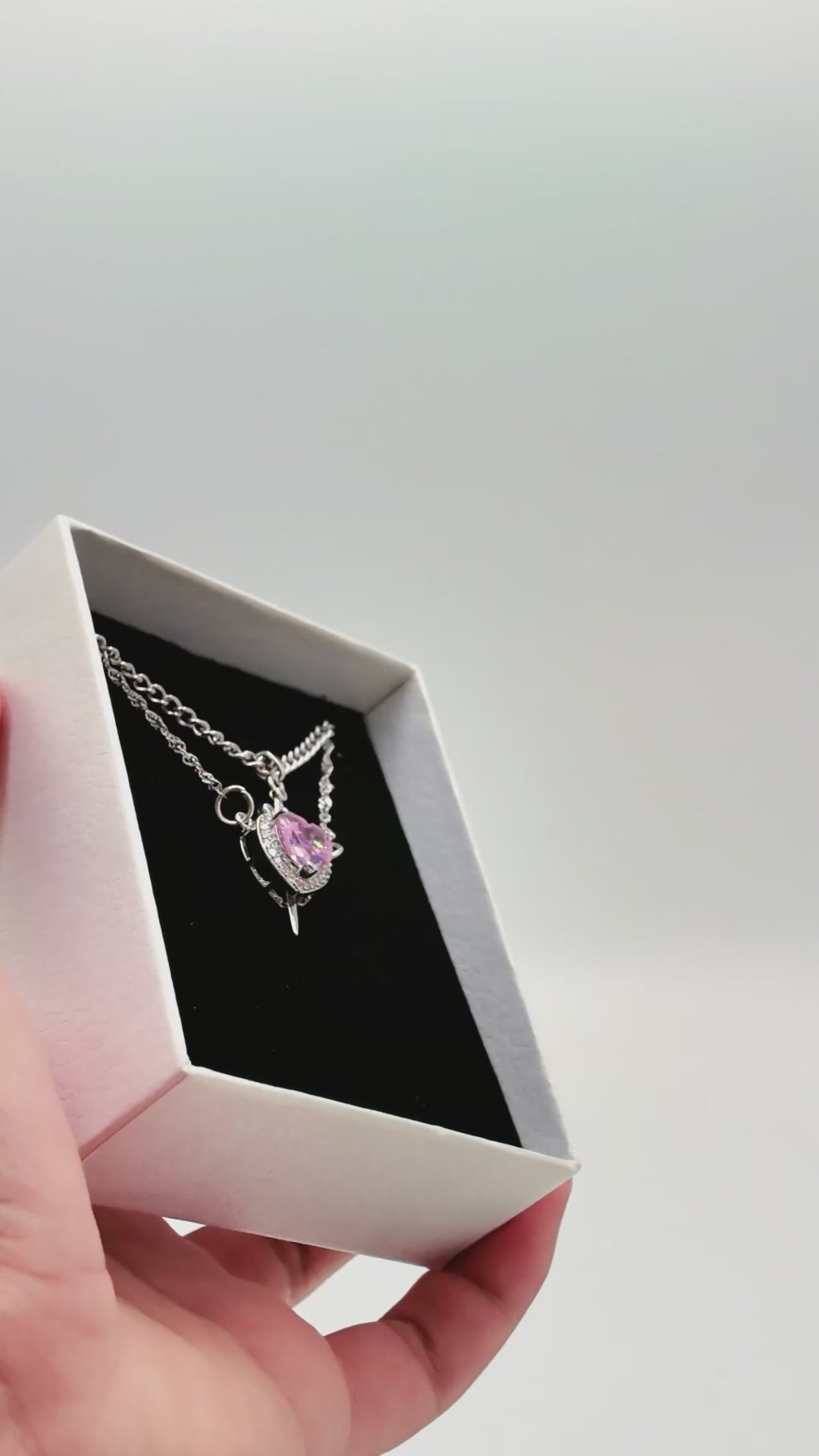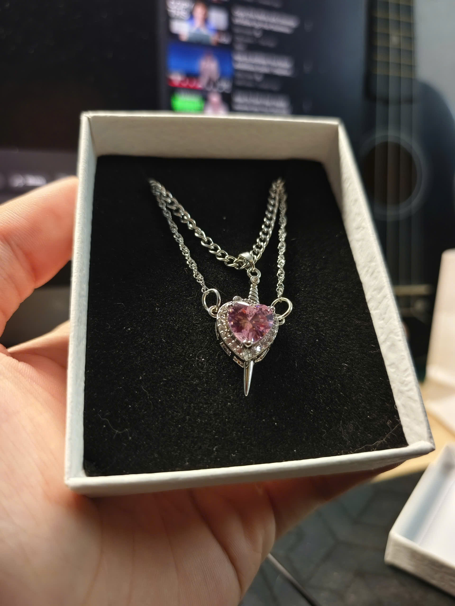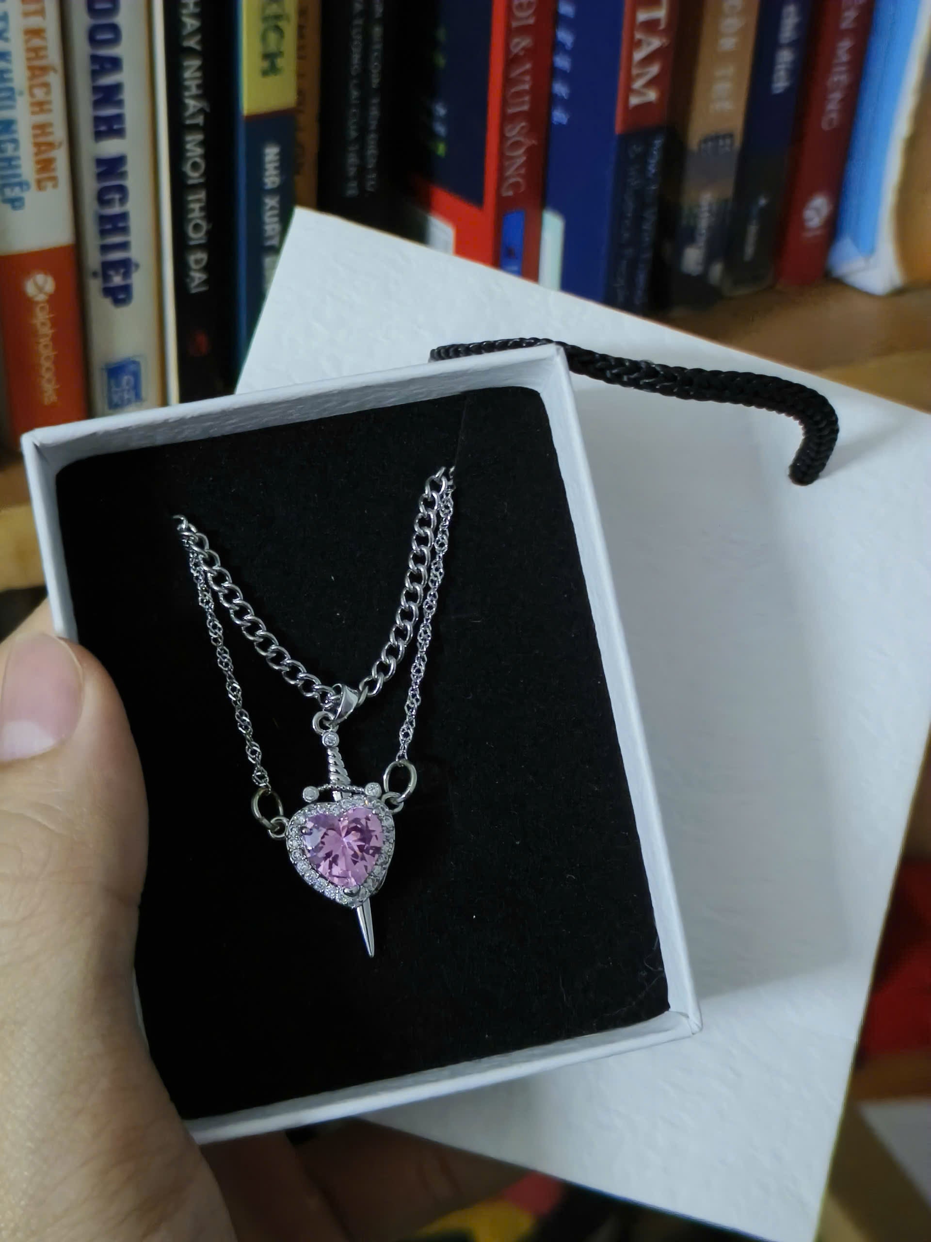 Thiết kế độc đáo với hai mặt dây chuyền ghép lại thành một, trái tim dịu dàng và thanh kiếm mạnh mẽ. Biểu tượng của tình yêu trọn vẹn: vừa ngọt ngào, vừa kiên cường.