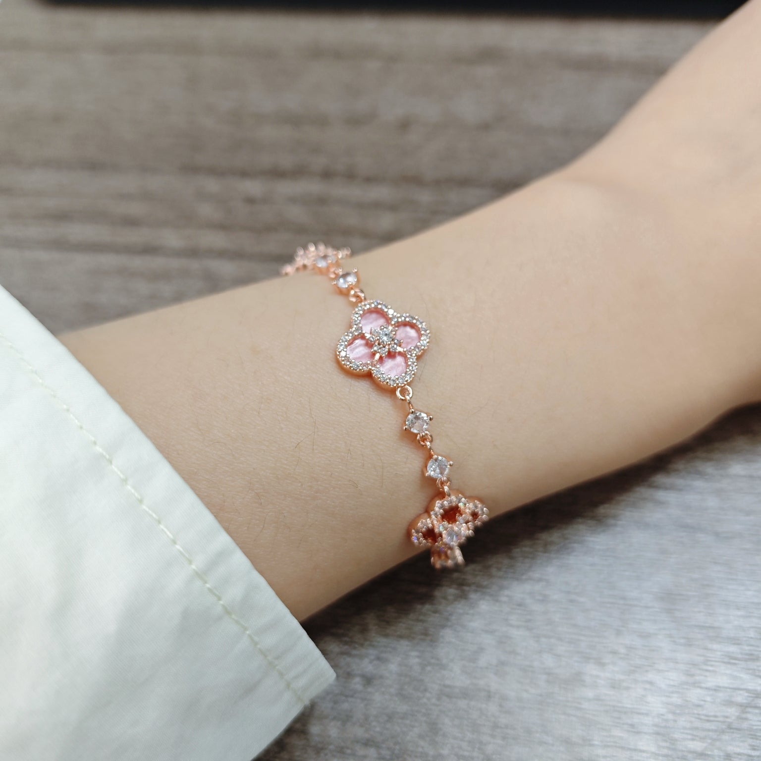 Lấy cảm hứng từ bộ sưu tập cỏ 4 lá của Van Cleef, thiết kế Sakura Cleef tái hiện vẻ đẹp hoa anh đào trong phiên bản vòng tay đầy nữ tính và thanh lịch.