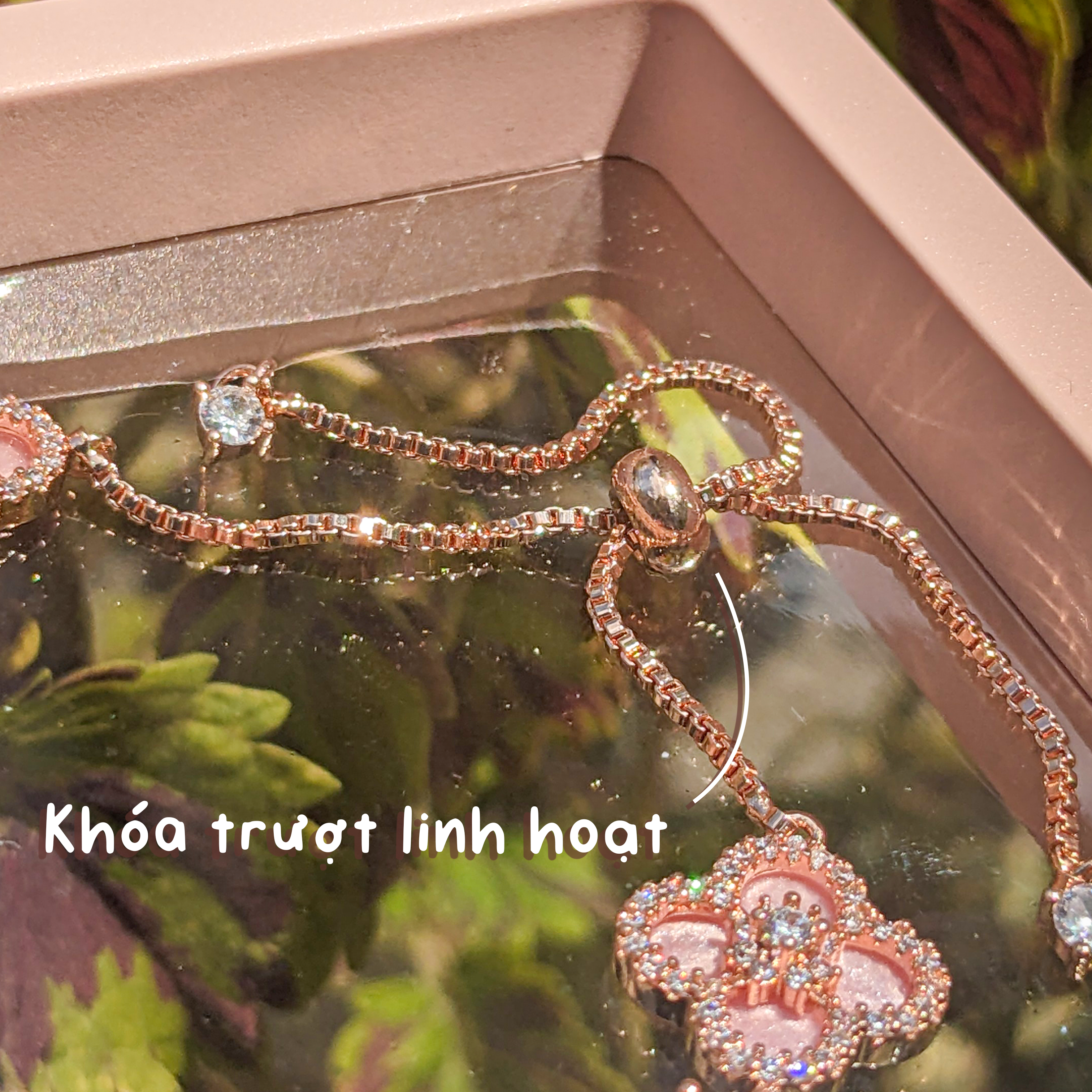 Khung: Đồng mạ Vàng hồng 18k, với công nghệ mạ PVD cho lớp mạ dày và bền bỉ theo thời gian
